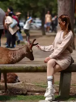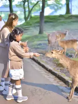 国内外游客都会前来参观,游客可以通过购买公园小贩出售的“鹿食”来喂鹿。旺季时,鹿食摊位前常常人头攒动,排起长队。这些扁平的圆形鹿食🥞每份售价约为200日元。