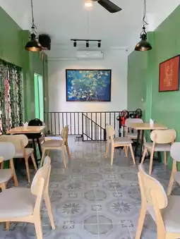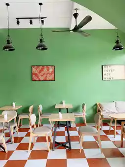 位置好找 装潢:简约风格,以白色和绿色为主色调。空间虽小,但不会让人觉得拥挤。公交车可以免费停在店旁边。饮品价格:便宜,2万越南盾以上。我去的那天点了一杯热黑咖啡,2万越南盾(混合咖啡)。8/10分。员工:8/10分,友好热情。强烈推荐,8/10分。
