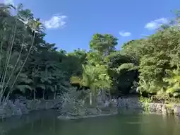 小花园、池塘和竹林小径,是漫步的理想之地,我得以近距离欣赏冲绳传统房屋的建筑结构和装饰。在树荫下,一边享用清凉的红糖冰淇淋或冲绳豆腐甜点,一边安然入睡。
