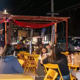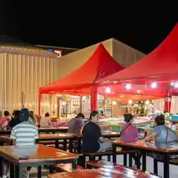 我可以告诉你,这个地方非常大,非常宽敞。不仅仅是我们能看到的前面区域。走进里面,你还会看到许多美食摊位。选好食物后,你可以找个座位坐下。这里有现场音乐表演和 DJ 播放音乐供你欣赏。