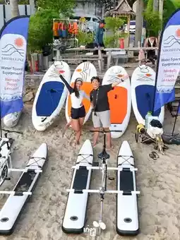 ที่นี่มี 𝗪𝗮𝘁𝗲𝗿 𝗦𝗽𝗼𝗿𝘁𝘀 𝗚𝗲𝗮𝗿 ให้เช่าหลากหลายแบบทั้ง桨板,LED桨板,水上自行车และSUPMaRaN (มาจากคำว่า Sup Paddle + 双体船) หรือ桨板ที่มีเครื่องยนต์ไม่ต้องออกแรงพายเอง ั่งได้สูงสุด2คนจะมาเล่นคนเดียวมาเดทเป็นคู่ หรือมาเป็นแก๊งเพื่อนก็สนุกมากกกกกก