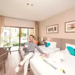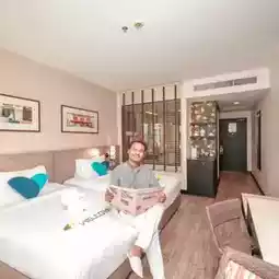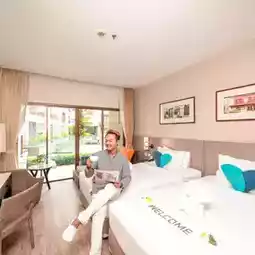 尊贵海景房。您可以从阳台直接步入泳池,阳台前方的角落设有舒适的座椅,让您在泳池边尽享惬意时光。房间还配备浴缸,让您舒适地泡澡放松。此外,这里还有一家名为 Terrace Bar & Bistro 的餐厅,供应泰式和西式菜肴以及各种饮品。如果您喜欢咖啡馆,我们推荐 D Boulangerie,那里有多种咖啡饮品和烘焙食品可供选择。如果您正在普吉岛芭东寻找设施齐全的住宿,我们推荐这家#DEEVANAPLAZAPhuketPatong
