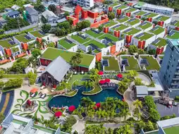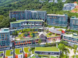 #雨季旅游目的地 豪华住宿,坐拥壮丽景色 #普吉岛 酒店采用素可泰现代建筑风格,红砖砌成,入口处美观醒目。泳池也十分漂亮。