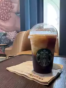 你仍然可以找到焦糖玛奇朵、冰黑咖啡、抹茶绿茶和季节限定饮品等经典菜单,就像其他分店一样。这里的氛围也独具特色。🥤