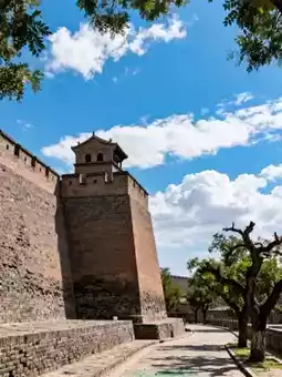 • 城墙日落(下午6:00):用广角镜头拍摄“马脸敌台”和“夯土纹理”,前景中一位平遥老居民推着车的模糊身影。