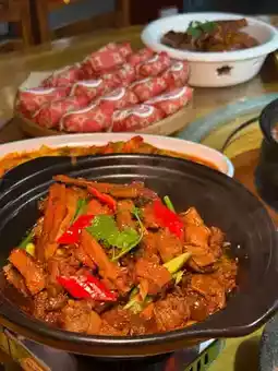 ✅ 木烤温泉鹅:一上桌就惊艳!鹅皮金黄诱人,油润酥脆,一口咬下去,油脂的香气与木香完美融合。鹅肉鲜嫩多汁,酸甜的酱汁更是锦上添花。✅