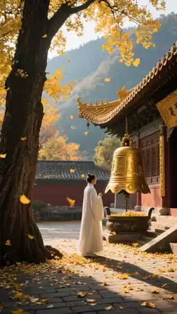创始人王重阳的修行之地。寺庙建于古柏参天的山上。秋日的午后,阳光透过金黄色的屋檐和落叶洒下斑驳的光影,钟声悠扬,落叶静谧飘落,宛如仙境一般。🕊️