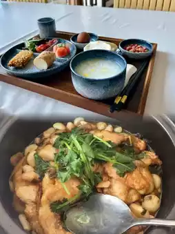 食物出乎意料地好吃!这是正宗的闽南菜,他们还供应自家养的鸡、鸭和蔬菜,新鲜又甜美。