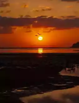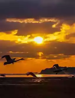 日出与天鹅一同冲破海平线,