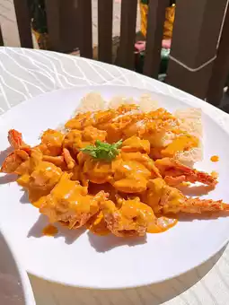 用泰式酱汁烹制龙虾在外面比较少见。酱汁顺滑,但并没有掩盖龙虾的鲜美。香脆炒米粉炸得非常酥脆