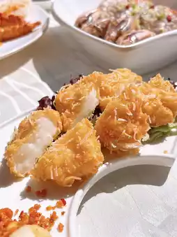 摆盘精致,培根裹上一层薄薄的椒盐脆皮炸面糊,外皮微脆,培根本身弹牙鲜嫩。