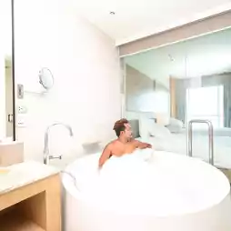 最重要的是,所有客房均可欣赏海景,且每间客房都配备浴缸