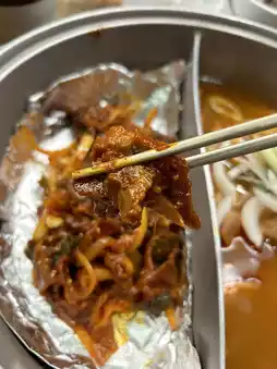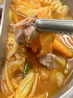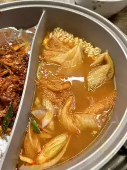▪️“猪肉泡菜锅”里有一整根泡菜,是用剪刀剪的。我觉得泡菜不够新鲜,也不够酸,但应该符合大众口味。强烈推荐👉一定要加泡面❗️