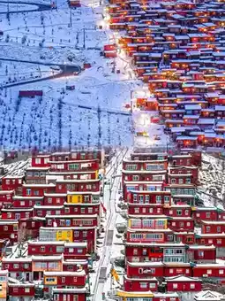 • 色达喇荣五明佛学院:世界上最大的藏传佛教佛学院之一,红色的木屋遍布山间,气势恢宏,令人震撼。曼荼罗是佛学院的最高点,您可以跟随僧侣顺时针转动经轮祈福;观景台可以俯瞰佛学院全景,是绝佳的拍照地点。