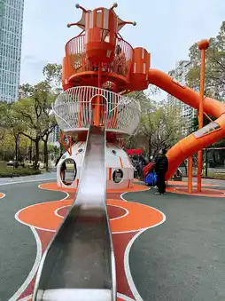 👉超大型滑梯组合:滑梯是橙色的,非常上镜。有螺旋滑梯和直线滑梯,更适合年龄较大的孩子。