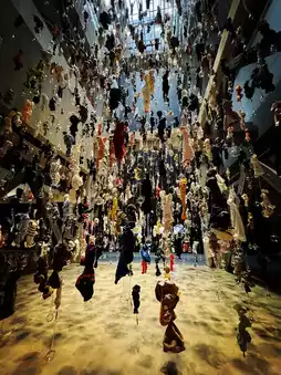 她的艺术创作以人为本,对日常材料的敏锐感知赋予作品鲜活的生命力。展览以大厅内的同名装置作品《天空补丁》拉开帷幕,该作品由三件作品组成:《飞行器》、《天空补丁》和《天空补丁》。