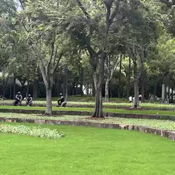 • 都市绿意 — 草坪、花坛和绿荫小径在城市中心营造出现代花园般的氛围。