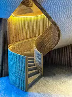 大堂的螺旋楼梯也是用几根竹子搭建的,