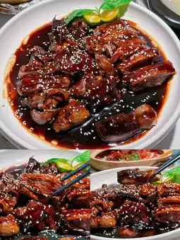必尝招牌鹅!精选250天7斤重的广东清源瘦黑褐鹅,肥瘦适中,用料纯正,搭配30多种天然纯香料调配出黄金比例酱汁!