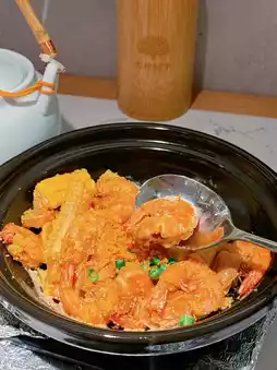 一道鲜美可口的菜肴,鲜虾与蛋黄完美融合,再用咸蛋黄火烤制而成,咸香酥脆,鲜美无比,味道绝佳😝