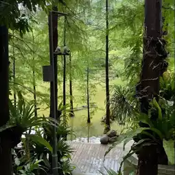 • 亮点:一座传统的中国式亭阁,掩映在竹林之中,绿砖灰瓦,颇具江南园林风情。