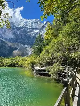 #中国旅行 仙诺多姬是四川令人叹为观止的景点之一,绝对会让你终生难忘。作为亚丁自然保护区的一部分,它以壮丽的雪峰而闻名,阳光照射下,雪峰仿佛闪闪发光。在这里徒步旅行非常棒,因为步道会带你穿过茂密的森林、清澈的溪流,还会经过随风飘扬的五彩经幡。