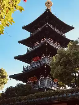 在凉爽的季节,例如深秋,游览寒山寺将是一场视觉盛宴。寺庙大殿和庭院周围环境静谧如公园,景色优美,金灿灿的银杏叶、火红的枫叶等时令色彩缤纷,与寺庙标志性的黄色墙壁形成鲜明对比。