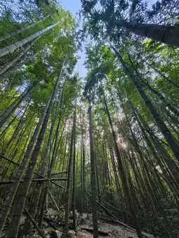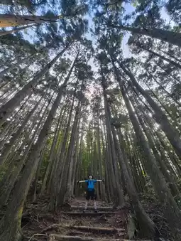 前段是樟树林,中段是竹林,后段是柳杉与其他树木混交林,树荫凉爽。樟树林中设有石桌石椅,竹林小径旁则设有竹竿。结合中等山地凉爽的气温和大雪山森林休闲区丰富的生态环境,这是一次适合家庭的舒适郊游。