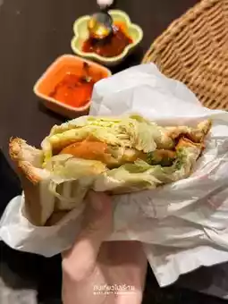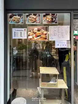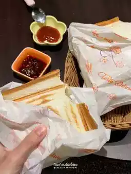 所有的菜单都是中文的,所以点餐有点困难。我想吃面条和鸡蛋,但没找到。最后,我点了一份热虾吐司。馅料十足,味道鲜美。价格也很合理,大约50泰铢一个起。📌