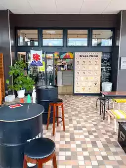 ☝人气爆棚的“Amefuto John”可丽饼,上面铺满了厚厚的奶油,但只在限定日期供应,所以出发前请务必查看官网。这次我买的是普通大小的,但味道依然很棒。除了可丽饼,他们还提供刨冰和软冰淇淋,是休闲小憩的好去处。📍