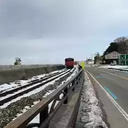 JR冰见线就在附近,运气好的话,还能拍到火车以立山山脉和恩纳岩为背景,远眺大海的美景!🚃✨