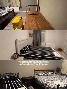 我们预订了一间双卧室套房,一间是单人床,另一间是三张床。180格鲁吉亚拉里(13.95美元/小时)= 2,511泰铢,人均502.2泰铢。——