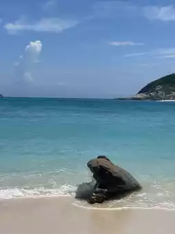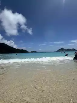 快艇靠岸后,映入眼帘的是一片清澈见底的碧海。我们搭乘巴士前往阿波连海滩,车程约10-15分钟。下船后,我们找到一条通往海滩的小路,眼前是如水母般湛蓝的海水。💙💙