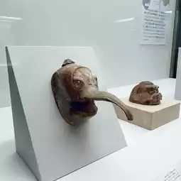 · 神话动物园。🦊 步入展厅,映入眼帘的是一系列引人入胜的动物面具。您将邂逅能剧和狂言中狡黠多变的狐狸精,传统舞狮中威武雄壮的狮子,以及长着长鼻子、调皮捣蛋的天狗。每个面具都是雕刻、绘画和表情的杰作。