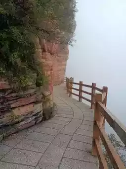 1. 赤壁丹霞:红色的悬崖与云雾交织,如梦似幻