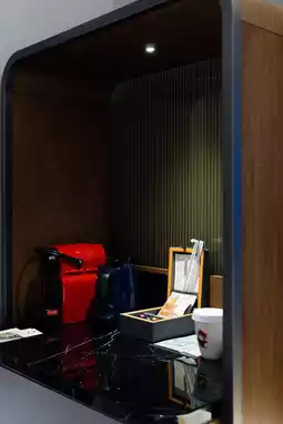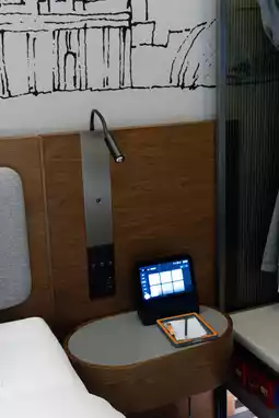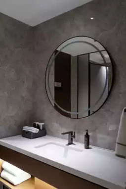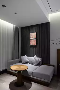 入住的是一间35平方米的豪华特大床房,房间宽敞舒适,布局合理。房间配备全套智能控制系统,客人可通过语音指令调节灯光、空调和窗帘。操作流畅便捷,有效提升了入住的舒适度和现代感。——浴室设计尤其值得称道。干湿区域划分清晰,洗漱区配备带环形灯的