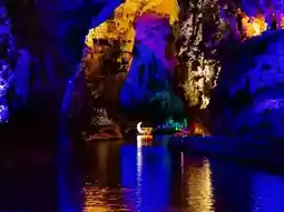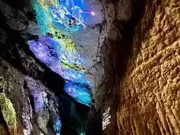 2. 天泉洞:中国最大的喀斯特溶洞。步行5公里,穿过三个洞厅,欣赏灯光璀璨、宛如梦幻宫殿般的钟乳石。包含地下河游船(包含在交通联票中)。