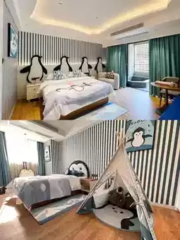 酒店建筑风格独特,融合了现代设计与自然元素,营造出和谐之美。客房宽敞明亮、洁净舒适,设施齐全。柔软舒适的床铺确保您一夜好眠,落地窗则将窗外美景尽收眼底。🌿