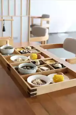 这是我第一次在酒店吃到如此丰盛的早餐,精致的九格托盘盛放着各种美食。我早就听说过扬州早茶,这里还有扬州特色干豆腐,主要有两种选择:馄饨或面条。