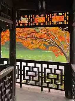 📍 和园:红枫与花窗交相辉映,构成如诗如画的美景,每一帧都令人叹为观止