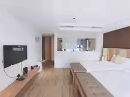 房间里有落地窗和美丽的绿植🪴,营造出温馨迷人的氛围🔥。虽然阳台不能打开,但我这次入住的房间可以欣赏到城市景观。白天可以拉开窗帘,让阳光洒进来🌞。