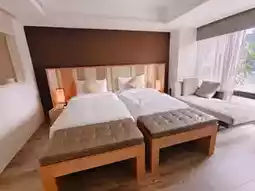 房间内配备了冰箱、茶包和咖啡包、两瓶矿泉水,甚至还有一台除湿机(很多温泉住宿都没有)。空调可以根据您的喜好调节,而且还提供室内拖鞋!