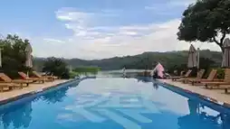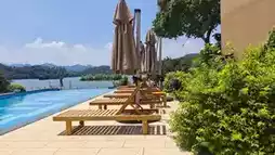最令人惊喜的是无边泳池,碧蓝的池水与远处的湖景浑然一体。午后,躺在泳池边的躺椅上,沐浴着遮阳伞下斑驳的阳光,欣赏着云朵在水面上翩翩起舞。偶尔,鸟儿飞过,模糊了泳池与湖泊的界限。