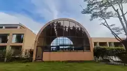 酒店的弧形玻璃建筑同样令人印象深刻,通透的设计将山景和树影映入眼帘,宛如一幅幅室内“装饰画”。傍晚时分,坐在露台上,您可以欣赏天空由蓝转粉紫的变幻,波光粼粼的湖面与群山轮廓交相辉映,令人心旷神怡,甚至连呼吸都变得轻柔舒缓。