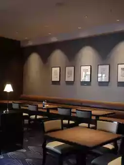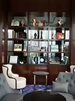 酒廊空间宽敞,书架上摆满了音乐和艺术相关的书籍,令人眼前一亮。这里座位充足,营造出一种开放而轻松的氛围📚
