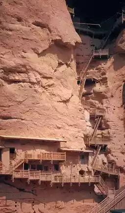 常规洞窟走廊(无铁丝网阻隔,视觉效果极佳)→ 27米高的唐代大佛(仰望修复后的金色佛身,气势磅礴)→ 攀登“地狱阶梯”至169号洞窟(倾斜70°的木质阶梯,陡峭到腿都酸!)→ 过桥观赏卧佛 → 前往黄涛汇流观景台(支付9.9元人民币即可拍摄“鸳鸯锅”风格的黄河双色奇观)