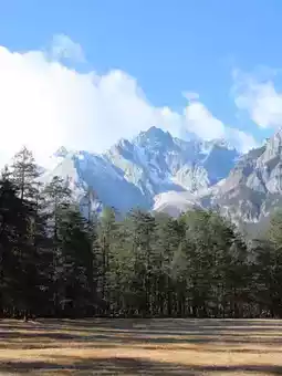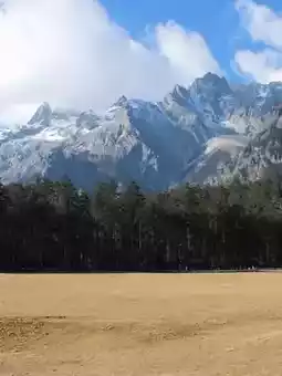 这里并非一片草地,而是一座海拔3700米的广袤斜坡舞台,天空、群山和草原在此为前来观赏的人们上演一出无声的史诗剧。毛牛坪是玉龙雪山三大主要观景台中面积最大、海拔最高的,它提供了一个截然不同的视角:可以饱览整个十三峰山脉的壮丽全景。与云山坪幽静的山谷或主景区冰川环绕的氛围不同,毛牛坪展现的是辽阔、原始、不羁的雄伟气势。这里是典型的藏式景观:开阔的视野、悠闲吃草的牦牛,以及在高山之风中猎猎作响的经幡。