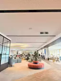 我一边俯瞰跑道,一边畅饮免费的比利时啤酒。🍺 不仅景色迷人,整个休息室的装潢也时尚雅致,让我难以抉择该坐在哪里!