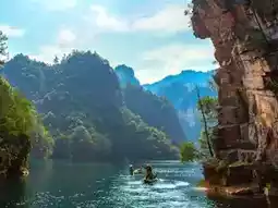 #探索中国 宝峰湖位于张家界武陵源风景名胜区,是一座静谧的人工湖,四周环绕着壮丽的喀斯特山峦和葱郁的植被。宝峰湖始建于20世纪70年代,湖水清澈见底,是泛舟湖上的绝佳去处。游客可以在湖上欣赏土家族和苗族的传统歌曲,为这片自然美景增添了浓郁的文化气息。宝峰瀑布和隐匿于山间的宝峰寺也是值得一游的景点。春秋两季,宝峰湖的景色尤为迷人。凭借其宁静祥和的氛围和秀丽的景色,宝峰湖是游客在张家界周边山林徒步旅行后放松身心的理想之地。