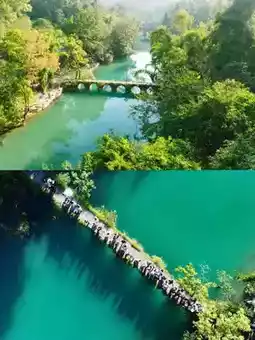 🍃 现实版的“绿野仙踪”——这里的水清澈见底,甚至能看到底下的石头和鱼儿!层叠的翠谷瀑布令人心旷神怡,而拉亚瀑布则直接倾泻在路上🌊 在水林里玩水超级好玩~ 最后,来到古老的小七空桥,桥面如翡翠般倒映着美景,几分钟就能拍出如梦似幻的照片。🌳